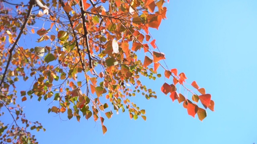 用斑斓的乌桕、火红的枫叶、金黄的银杏