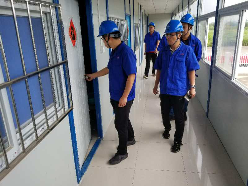 3、针对项目部的物资设备收拢存放、项目部办公室、职工宿舍门窗、用电设备情况、厨房煤气罐和电饭煲等防火、防盗、防煤气中毒、办公室防盗门窗、值班看守等安全措施进行检查布置,确保安全月期间项目安全生产工作稳步进行。