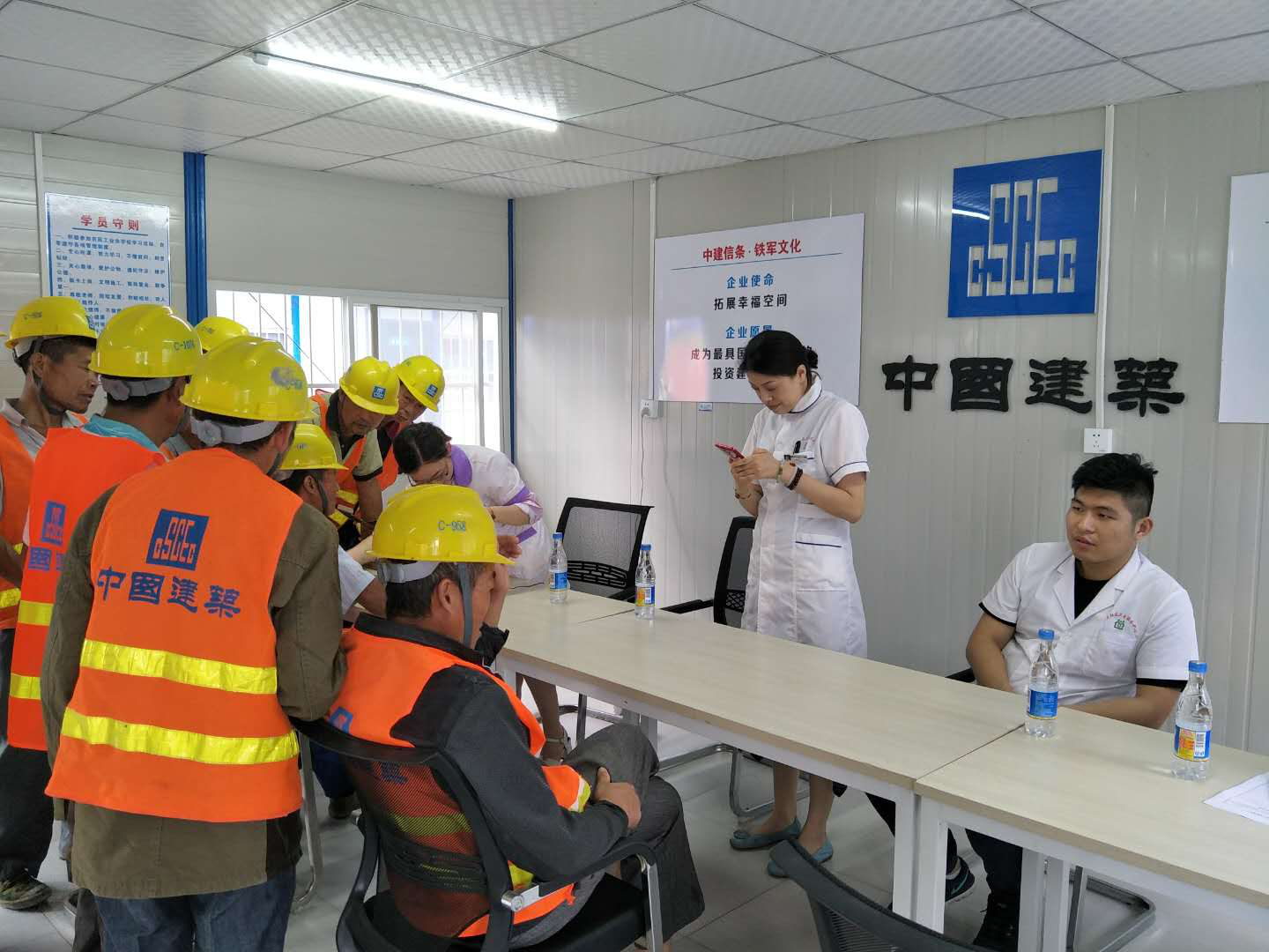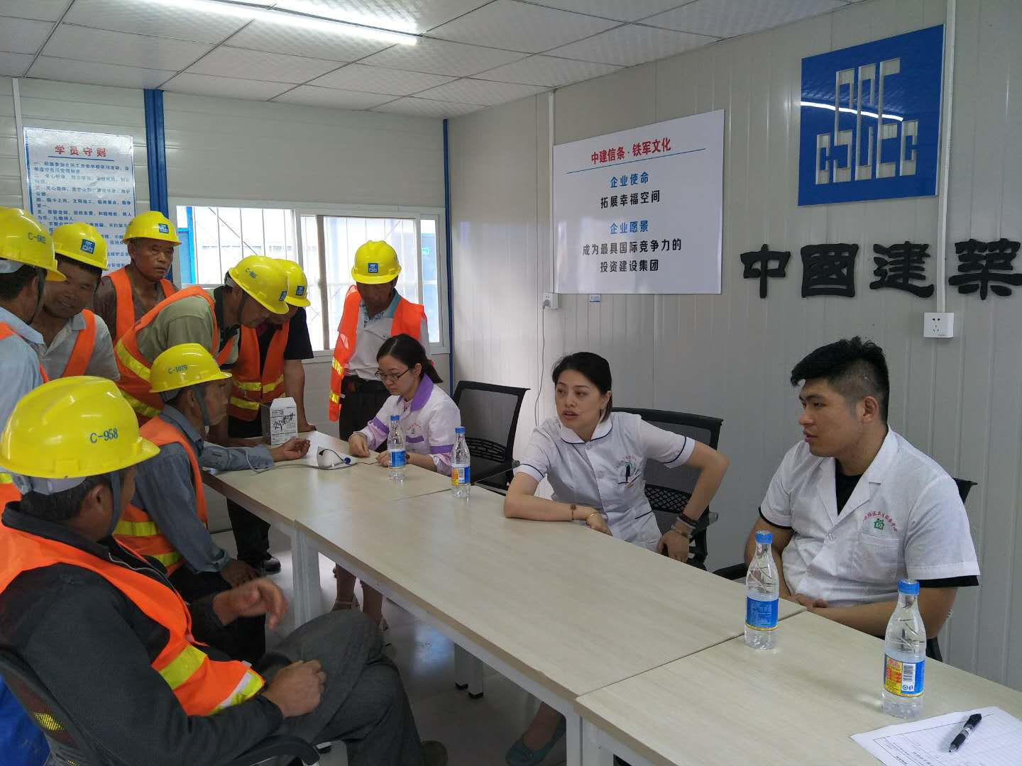 7、邀请秦淮区红花街道社区医院开展义诊活动,免费为工人测血压、心率、咨询相关医学常识。