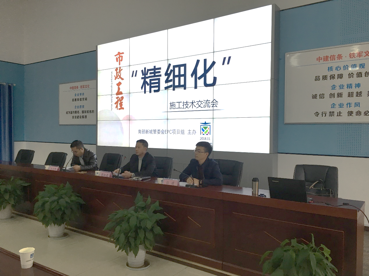 2018年11月16日,南部新城管委会EPC项目组特邀市政质监专家张建在北片区EPC项目部会议中心,就市政工程精细化施工技术,与EPC各片区参建单位进行交流。