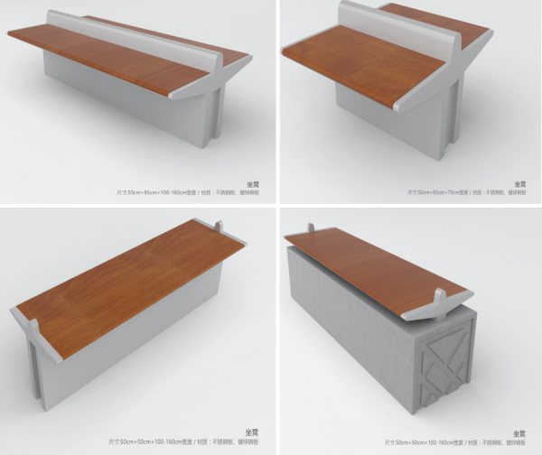 城市家具指城市中各种户外环境设施。南部新城的城市家具通过基础形态,色彩及材质的统一,形成区域的系列化。并通过对每个区域的不同产品,局部的装饰色彩及材质的不同,进行分区,将文化、特色融入到城市家具中。自成体系的城市家具,强化街区标识性,展示新城的人文魅力。结合科技生活理念,展现智慧街巷环境。