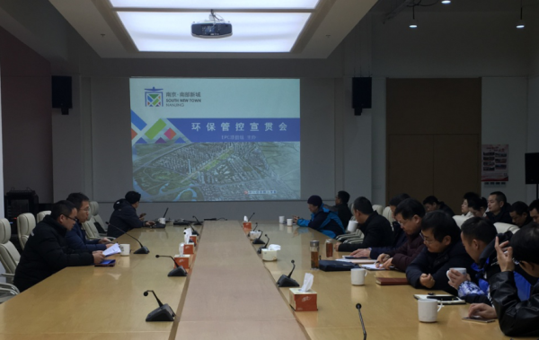 2019年1月24日,南部新城管委会特邀秦淮区环保局监察大队陆毅,就环保管控相关政策进行宣贯。陆毅从环保管控的目标、要求、案例、方法及智慧工地创建等方面进行了深入讲解。EPC各片区项目负责人、项目总工、技术骨干、专业监理等近70人参加了本次宣贯会。