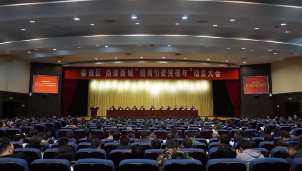 2月23日下午,秦淮区委、区政府和南部新城管委会共同召开“招商引资突破年”动员大会,总结2018年招商工作情况,落实市委、市政府关于“招商突破年”的部署要求,对新形势下招商工作进行再动员再推进。