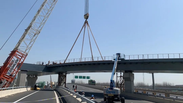 随着桩基、承台、墩柱等下部结构施工基本完成,3月20日,潘家花园立交二期工程首联钢箱梁顺利合龙,标志着项目全面进入上部结构施工阶段,为整个潘家花园互通工程达到通车条件奠定了基础。