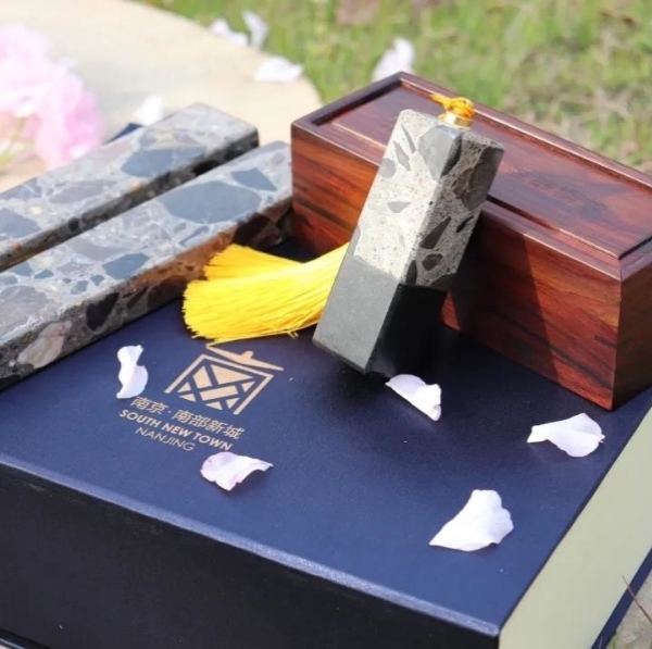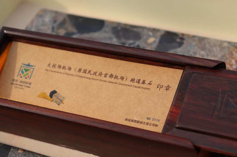 南部新城文旅公司用机场条石制作印章和镇纸的初衷,是试图展现和留存灵魂的四个角度:人们的温度、生活的诗度、土地的厚度以及梦想的深度,正如艾青所说“我爱这土地爱的深沉”,大校场机场不仅仅是一座机场,而是在日月更迭中,浓缩于时光的舍利子。让时间化为底蕴,流转而下的是内敛的润泽以及最纯粹的美。