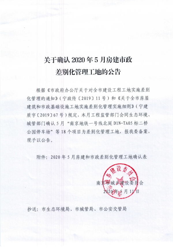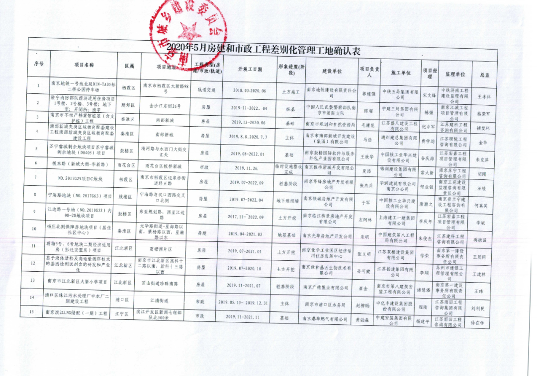 五月(第二十三批)南京房建和市政差别化管理工地最新名单正式上线。