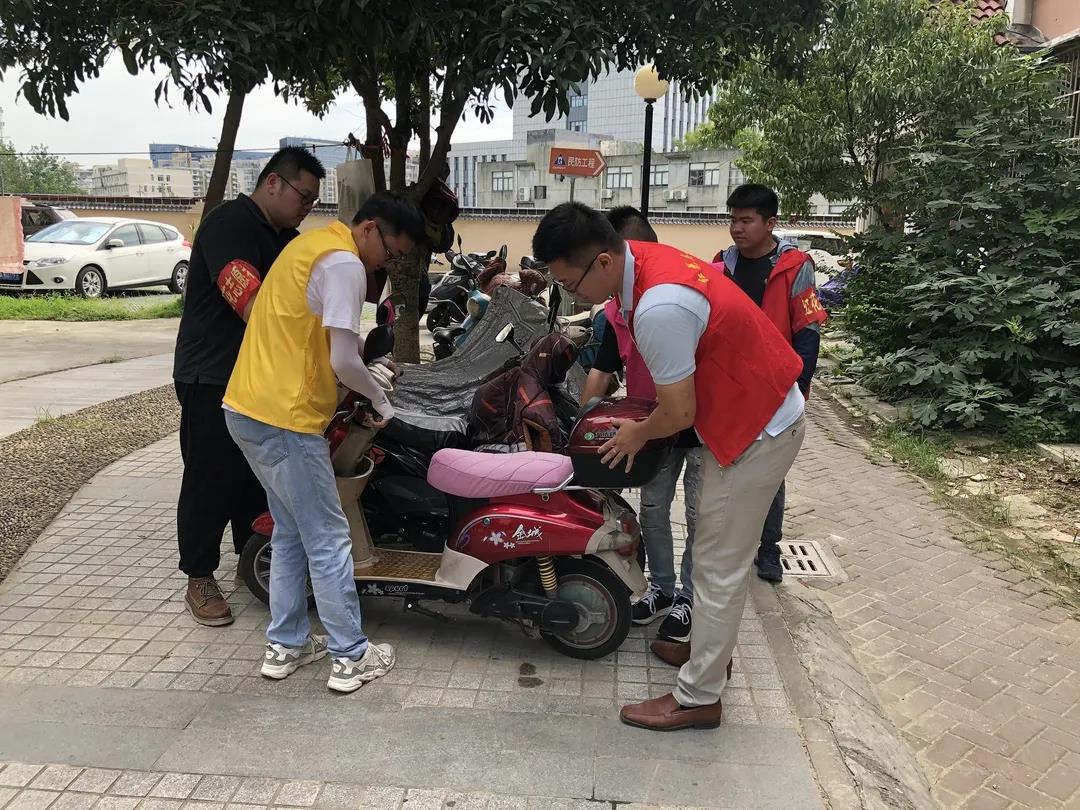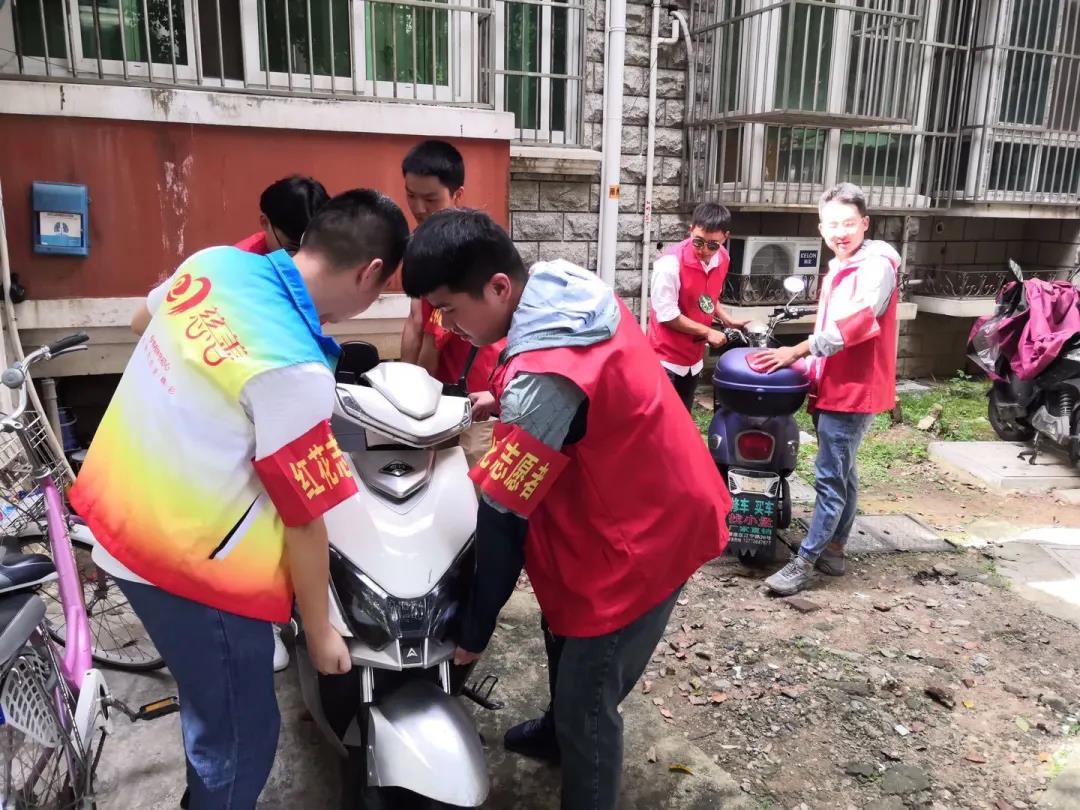 南部新城团支部的团员青年,积极行动,配合红花街道春天家园社区网格员冒着烈日,顶着高温,挨家挨户开展登记、巡查、走访,做到一户不漏。此前,秦淮区红花街道已先行先试,清理了现有车棚和地下室的废旧自行车。南部新城的团员青年们和网格员、城管队员们一起,将社区里各个楼道里乱停放的车辆又进行了一遍清理。