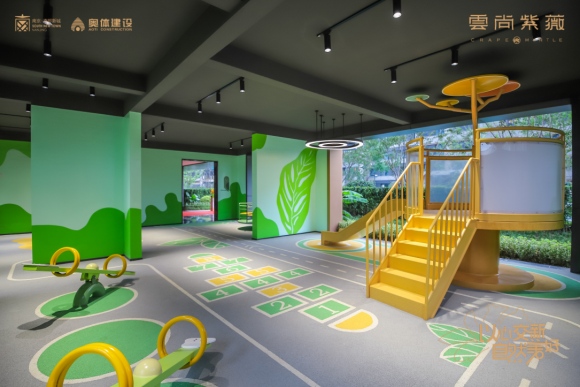 踏入社区,“植物园”系的高绿化率率先带来强烈视觉冲击——丛生朴树、香樟枝繁叶茂,老紫薇树沉淀岁月韵味,大金桂、枇杷等四季常绿树种点缀其间,真正实现“一步一景,四季有景”,让自然生机融入生活每一寸肌理。C7栋(公安编号)架空层,被打造成全龄乐活能量场:这里既有承载孩童欢笑的游乐天地,也有供成人闲谈放松的休憩港湾,更有下楼即享的运动健身空间。三大场景无缝衔接,让业主既能各寻所爱,也能随时共享陪伴时光。